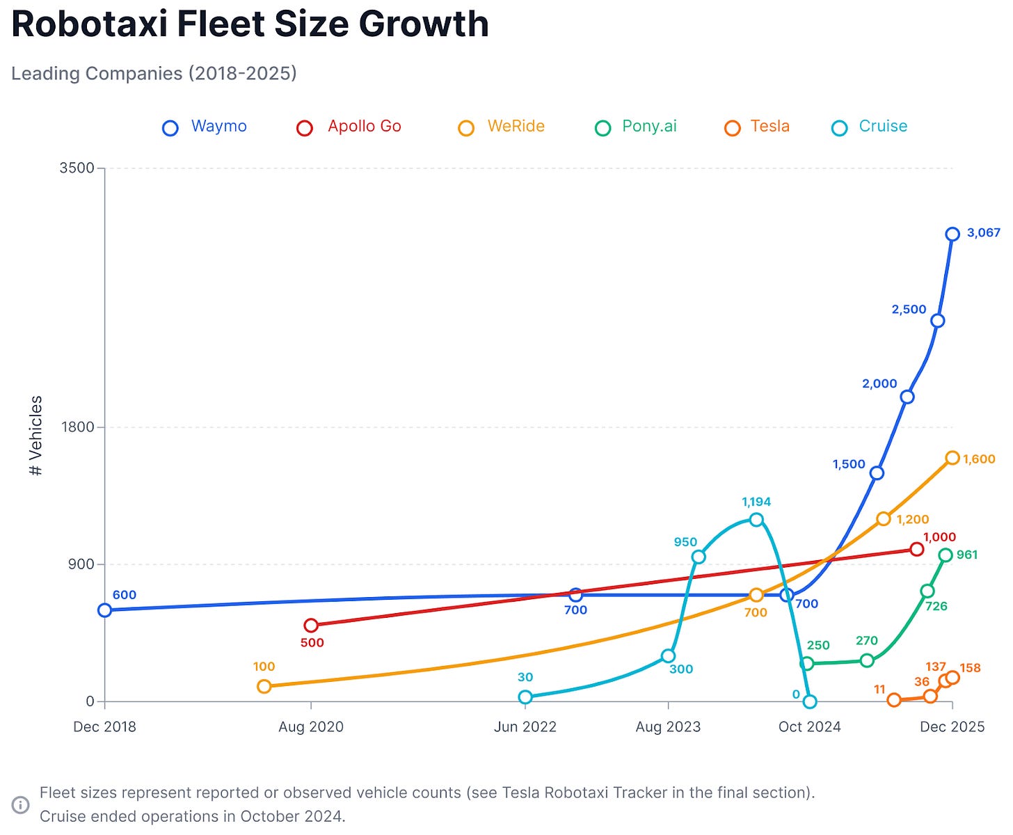 Kai Williams, of Understanding AI, recently published “16 charts that explain the AI boom“. It’s a great piece that visualizes the scale of what’s happening in AI infrastructure. I wanted to do something similar for robotaxis here on The Driverless Digest.