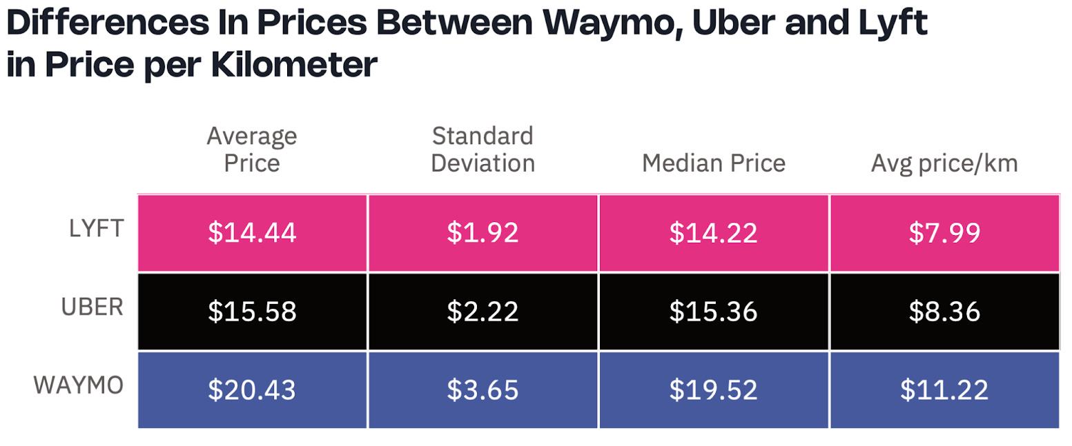 Waymo can charge a premium today because they're the only autonomous option. That won't last. Zoox is expanding, Tesla is scaling, and Chinese operators are eyeing Western markets. As competition grows and vehicle costs fall, prices will follow.