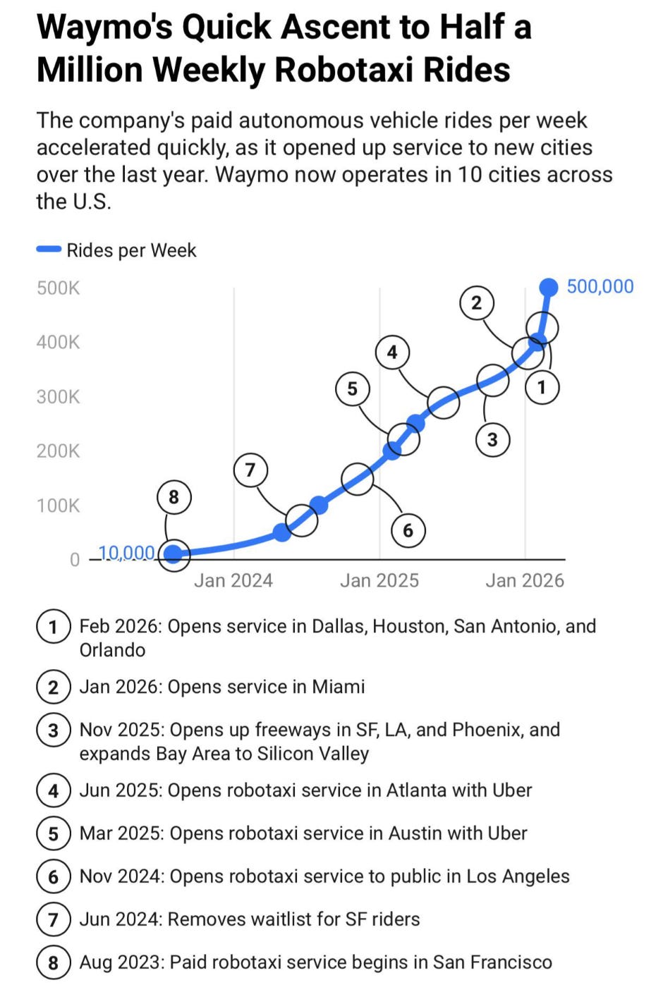 Waymo starts robotaxi services at San Antonio International Airport (link). Waymo launched its San Antonio robotaxi service in February, though it’s still not fully available to the public yet. The company has been operating an invitation-based system that it is scaling on a rolling basis, an approach it used in Dallas, Houston, and Orlando too. Waymo said on Tuesday that it has brought “tens of thousands of people” into the San Antonio service and that it plans to make the service available to all public riders soon in the city.