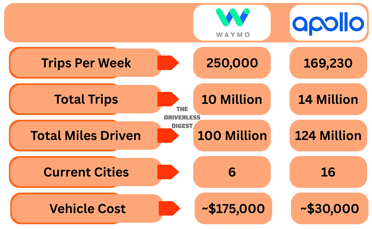 Baidu’s Apollo Go has now completed 14 million rides and their global footprint continues to grow - it’s now up to 16 cities. The company also poured in over 2.2 million rides in Q2 2025 (up 148% yoy), and has driven over 200M+ kilometers (link). As regular readers know, Apollo Go is a company I’ve been watching closely since they are basically the ‘Waymo of China’ but in some areas, like vehicle manufacturing, they are actually way ahead1.