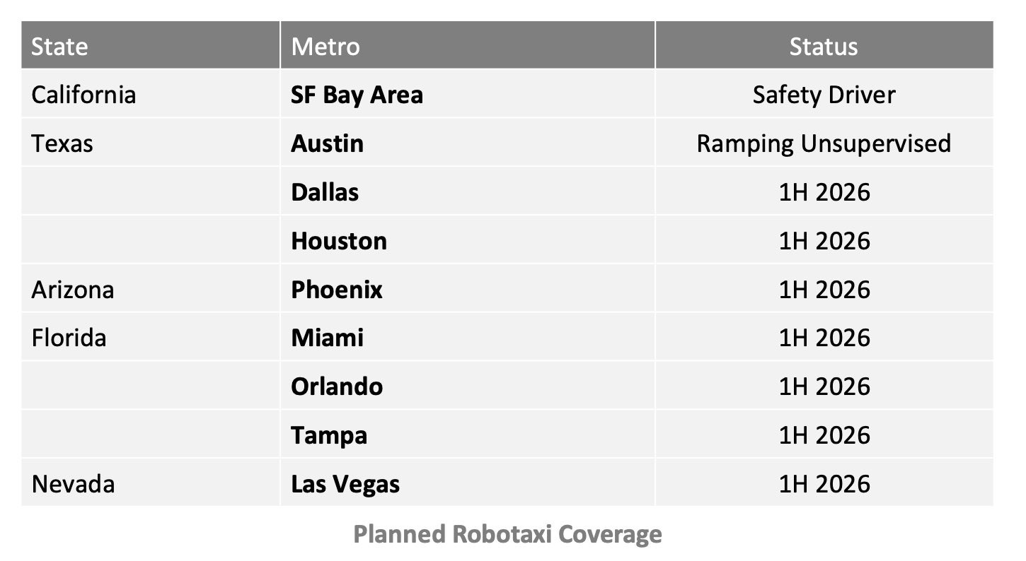The next 7 cities for Tesla’s Robotaxi service (link).
