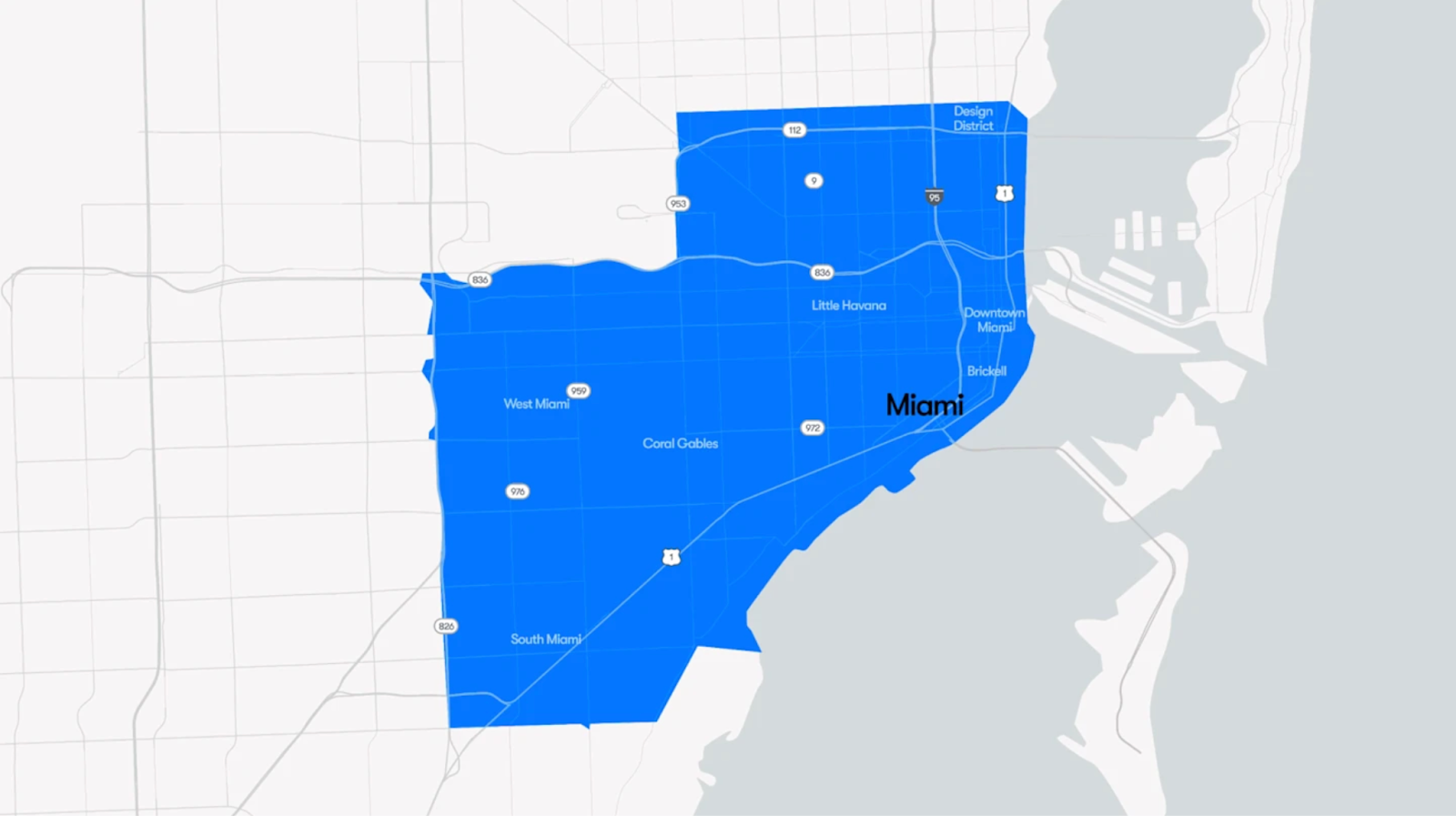 The initial service area covers roughly 60 square miles and includes several of the city’s best known neighborhoods, including Design District, Wynwood, Brickell, and Coral Gables. Miami International Airport is expected to be added in a future phase.