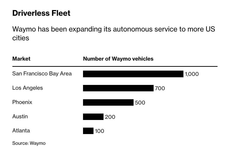 Waymo Launches Driverless Robotaxis on Freeways in First for US (link, no paywall). Starting this week, select riders in the Bay Area, Phoenix, and Los Angeles who opt in for freeway access — or who are already part of Waymo’s early-access group — will be able to take 24/7 trips that include freeway segments, with broader access rolling out over time.