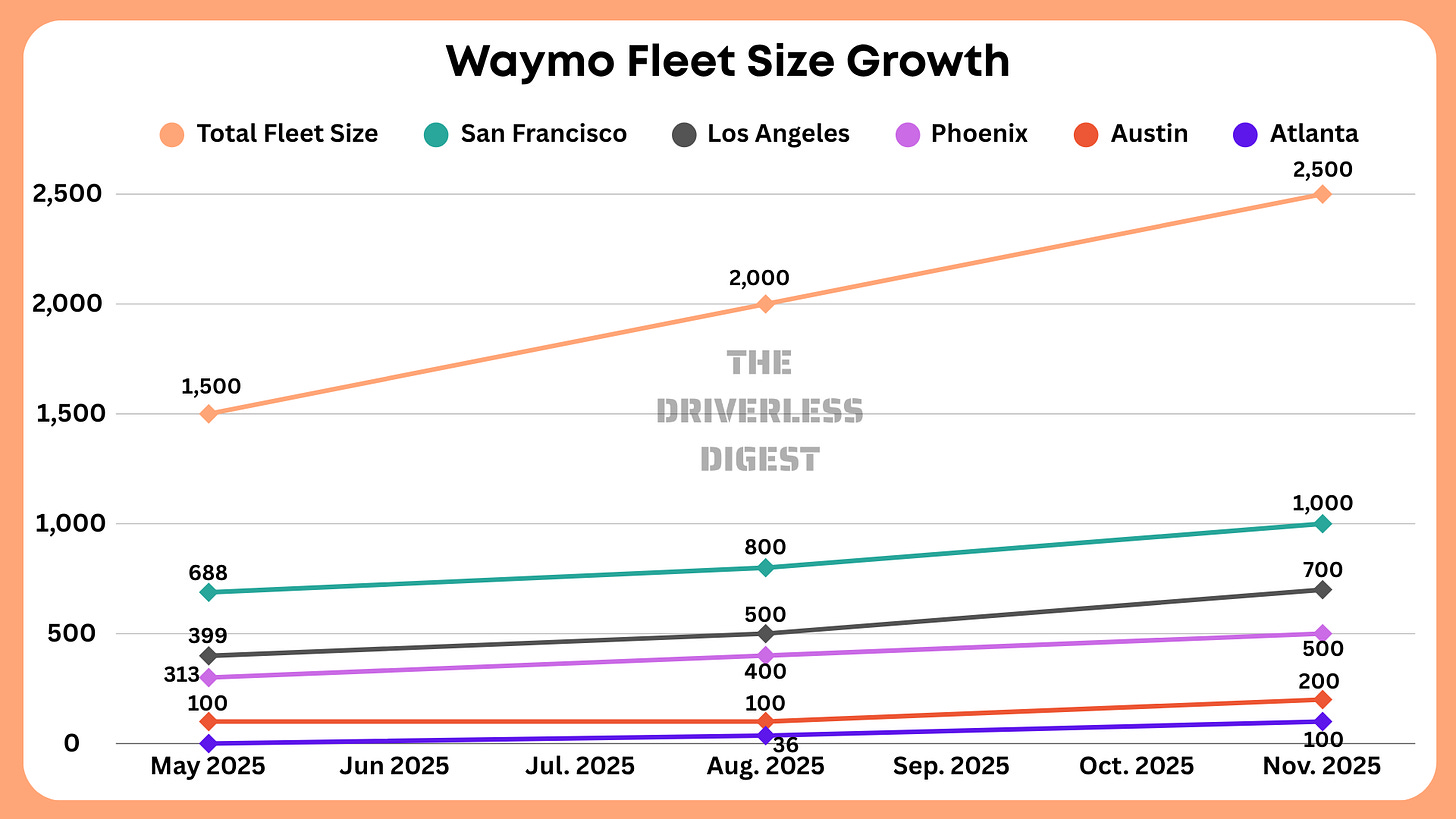 Here’s how Waymo’s fleet has grown over the past 6 months: