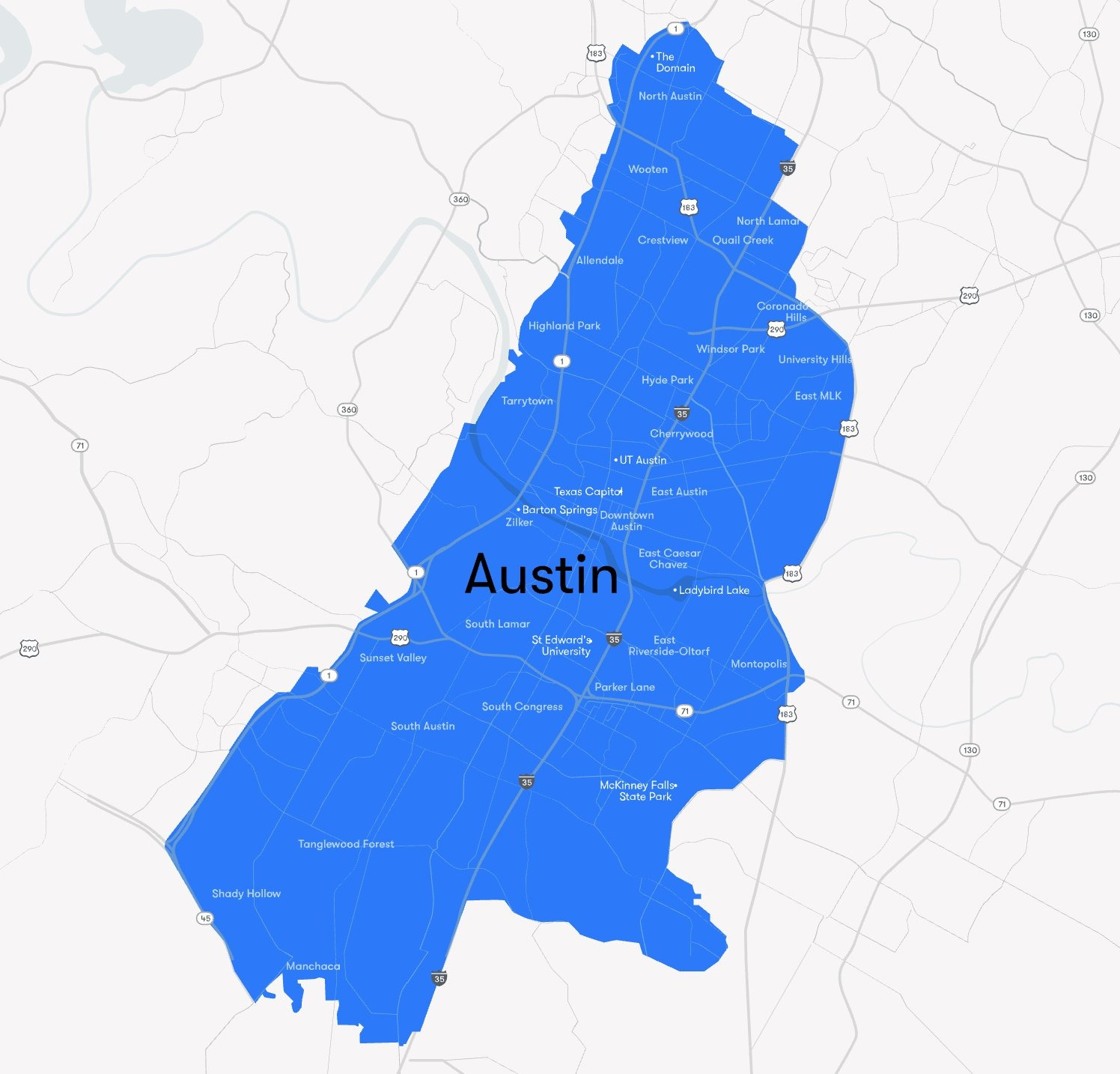 New, larger Waymo map in Austin (link). As a reminder, Austin is one of two markets, along with Atlanta, where Waymo rides are only available through the Uber app.